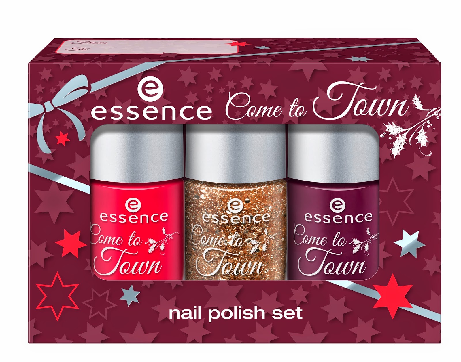 Make a wish! Mit der neuen trend edition „come to town“ lädt essence im November 2014 zum Weihnachtsshopping nach New York ein! Prachtvoll dekorierte Schaufenster, der XXL-Weihnachtsbaum vor dem Rockefeller Center und ein funkelndes Lichtermeer steigern die Lust aller Besucher auf den diesjährigen Geschenkekauf. Zum Verschenken schön ist auch diese trend edition: Die stimmungsvolle Farbwelt besteht aus klassischen Tönen wie Rot und Grün aber auch Silber, Gold, Beige sowie Pink. Highlights sind das shimmering body powder mit pudrig-leichtem Vanilleduft und die zwei süßen Nagellack- Sets mit jeweils drei verschiedenen Farben – alle in festlicher Geschenk-Optik, die keine Beauty mehr hergeben will. Auch für Augen, Lippen, Teint und Nägel sind viele spannende Pieces dabei. On top können alle Girls mit den fünf Grußkarten im Set Weihnachtswünsche an ihre Liebsten versenden. A wonderful christmas time… mit essence!